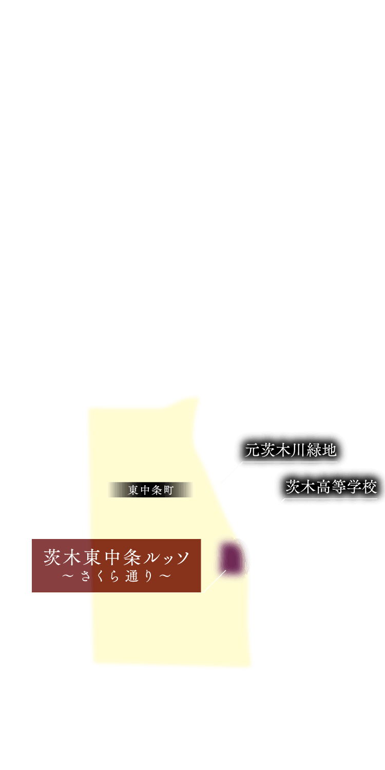 “東中条、さくら通り沿い、茨木高校向い”。