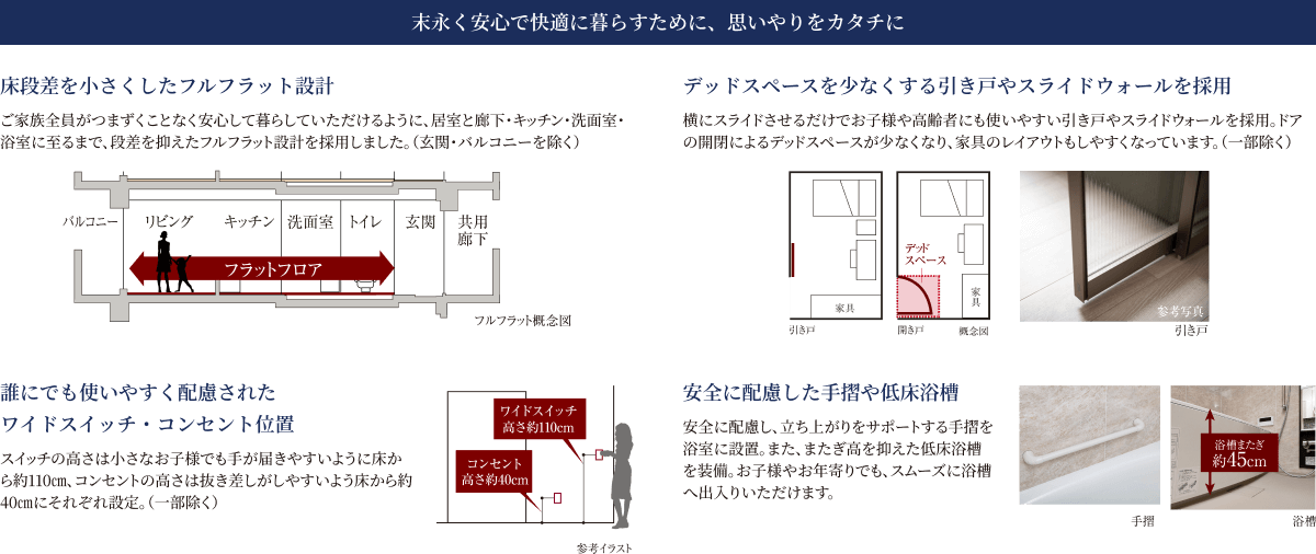 - 掲載の写真はラシュレ京都西大路マンションサロン内モデルルーム(Eタイプ)を撮影したもので、本物件とは仕様・設計・使用メーカー・外装の色調等が異なります。一部オプションや設計変更(有償)が含まれております。また、家具・調度品は含まれておりません。家具等の色調につきましては、実際とは異なります。(2024年10月撮影)