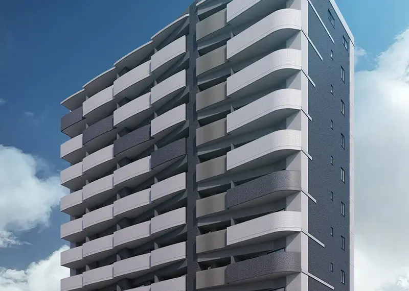 大通りに面した角地という視線を集めるロケーション。各地下鉄路線にも近い大阪都心ライフの拠点。そんな立地特性を建築に採り込むことを目指し、「人の流れ、時の流れ」をキーワードに設計しました。ラシュレシリーズの象徴でもある曲線をファサードに反復。流れを印象付けるデザインが、躍動と安らぎの都市生活を表現します。